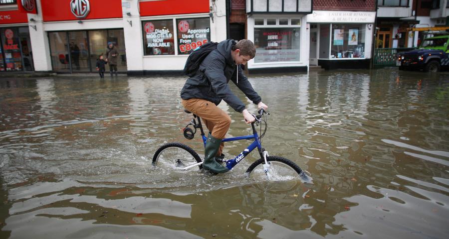 Το Γιορκ, ιστορική και τουριστική πόλη χτισμένη στο σημείο όπου συμβάλλουν οι ποταμοί Ουζ και Φος, ολόκληρες γειτονιές πλημμύρισαν, με το νερό να σκεπάζει σε ορισμένα σημεία αυτοκίνητα πάνω στο δρόμο.