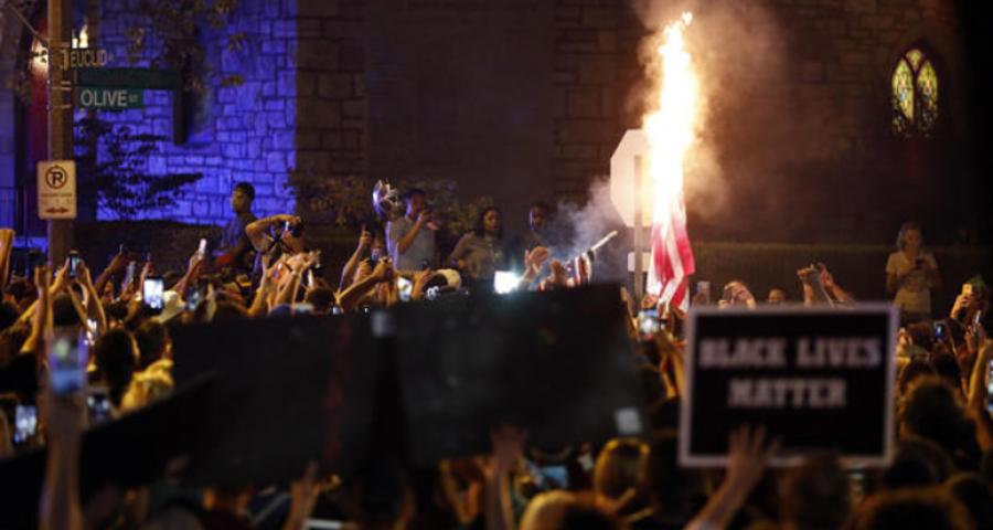 Οι αστυνομικοί έκαναν χρήση δακρυγόνων και πλαστικών σφαιρών, ενώ οι διαδηλωτές έσπασαν τα παράθυρα σε βιβλιοθήκη και δύο εστιατόρια και πέταξαν τούβλα και μπουκάλια νερού εναντίον των αστυνομικών. Ορισμένοι από το πλήθος πέταξαν επίσης πέτρες και μπογιά στο σπίτι της δημάρχου του Σεντ Λούις Λίντα Κρούσον, δήλωσε ο αρχηγός της αστυνομίας Λόρενς Ο΄Τουλ.