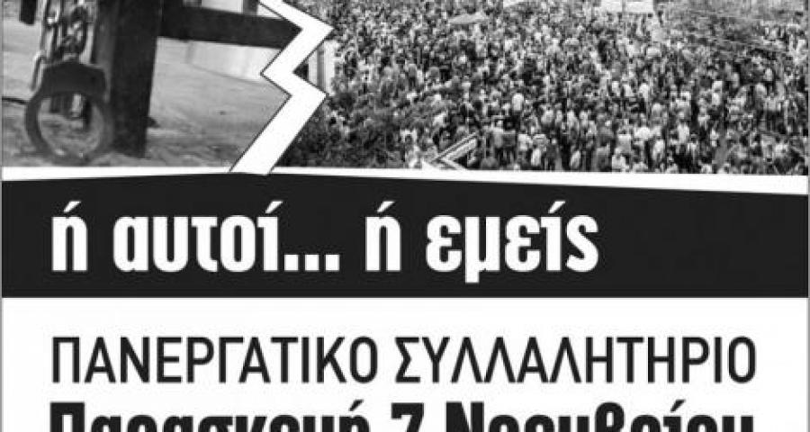 ΚΑΛΟΥΜΕ όλους τους δημοκράτες ,τους αλληλέγγυους, τους μη υποταγμένους και κάθε ενεργό πολίτη ΟΛΟΙ ΜΑΖΙ να ενώσουμε τις φωνές μας, τις δυνάμεις μας και τις διαφορές μας, σε έναν κοινό αγώνα για να σπάσουμε το «μαύρο» που επιβάλουν στις ζωές μας. Εργαζόμενοι, άνεργοι, συνταξιούχοι, νέοι όλοι μαζί πρέπει να βάλουμε τέλος σε αυτή την κυβέρνηση που καταδυναστεύει τα όνειρά μας, το μέλλον μας, τη ζωή μας.