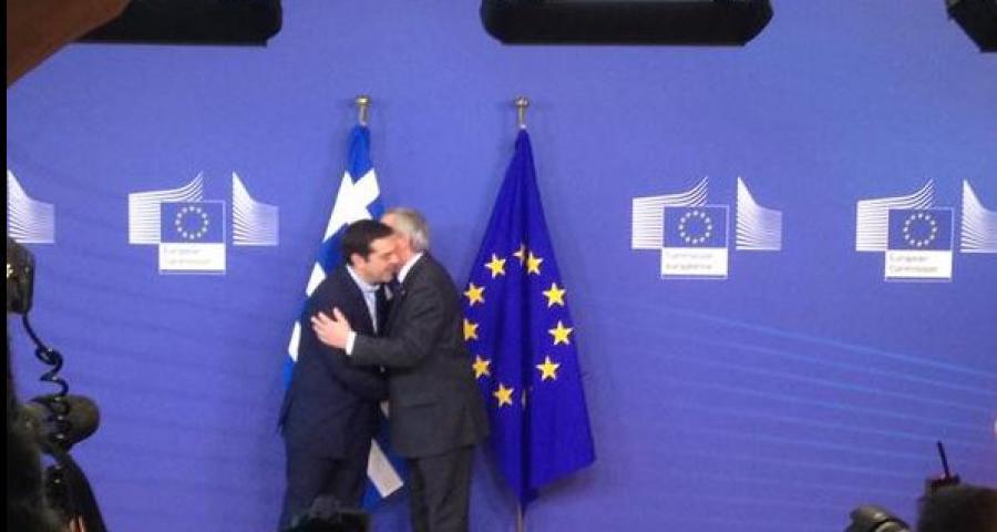 Ο πρόεδρος την Κομισιόν επιφύλαξε θερμή υποδοχή στον Έλληνα πρωθυπουργό στην έδρα της Ευρωπαϊκής Επιτροπής, ανταλλάσσοντας μαζί του ασπασμό μπροστά στις κάμερες. Στη συνέχεια μάλιστα έπιασε από το χέρι τον κ. Τσίπρα για να τον οδηγήσει στην αίθουσα της συνάντησης.