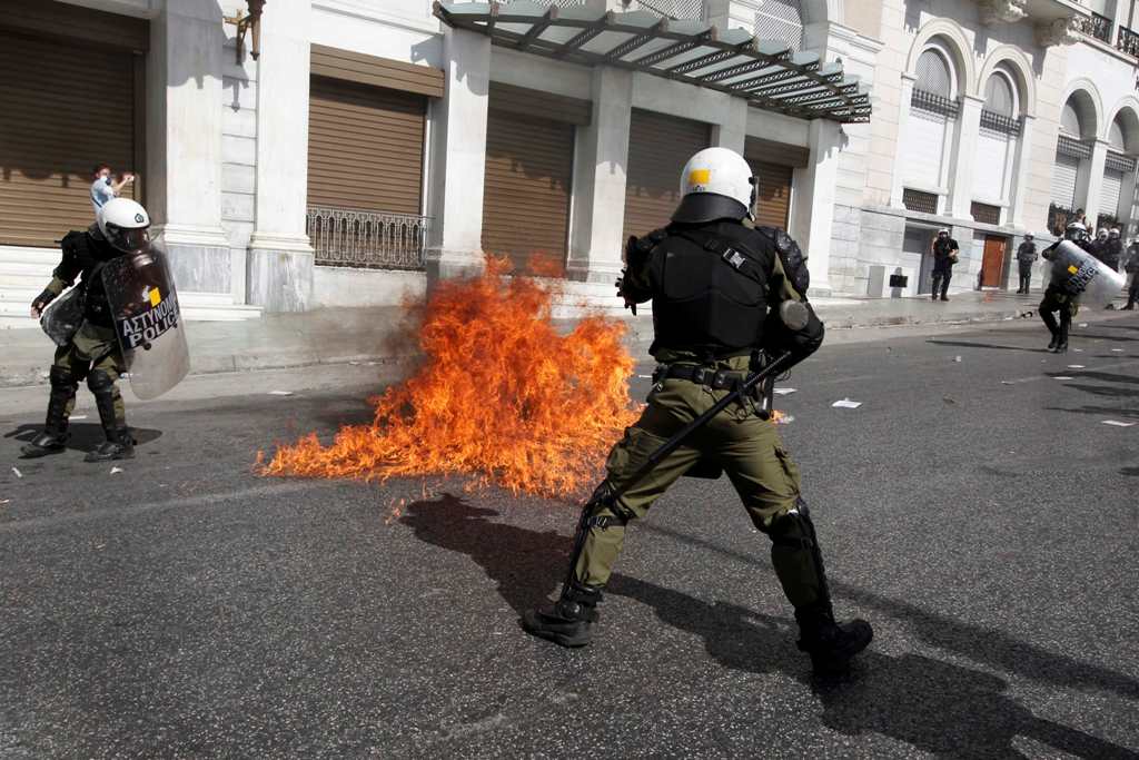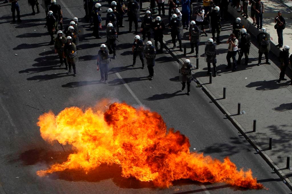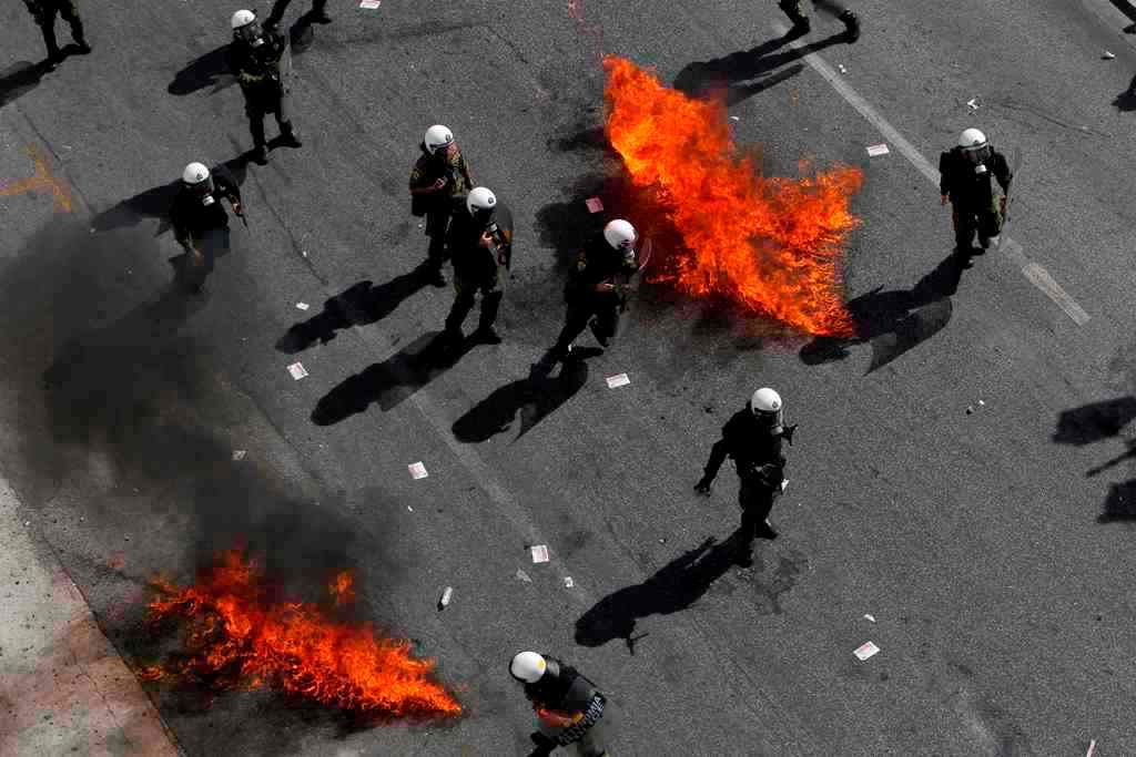 Νωρίτερα, σημειώθηκε ένταση στη Β. Γεωργίου, όταν τα ΜΑΤ επιχείρησαν να κόψουν σε πολλά τμήματα τη διαδήλωση