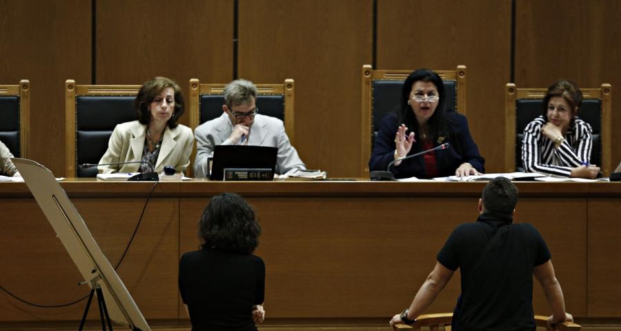 Τη δίκη παρακολουθούν βουλευτές και στελέχη του ΚΚΕ.