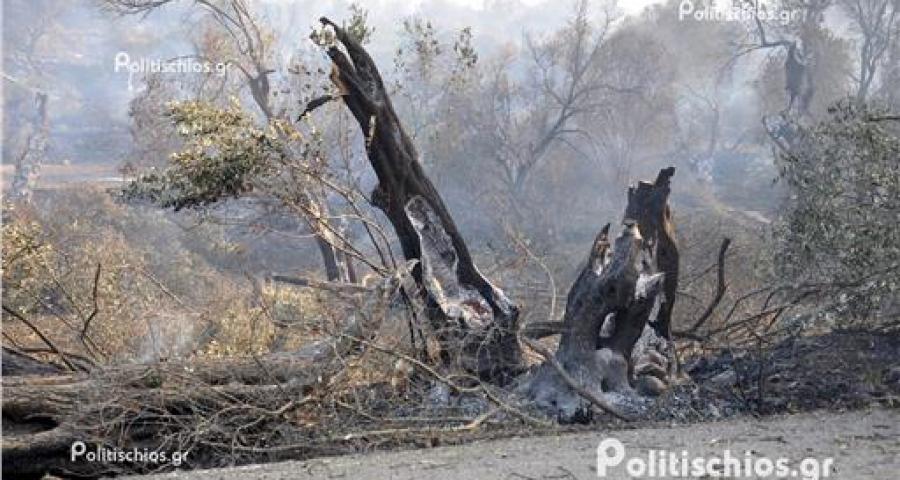 Ο πρόεδρος της Ένωσης Μαστιχοπαραγωγών, Γ. Τούμπας μιλά για καταστροφή που ξεπερνά το 90% στα συγκεκριμένα χωριά.