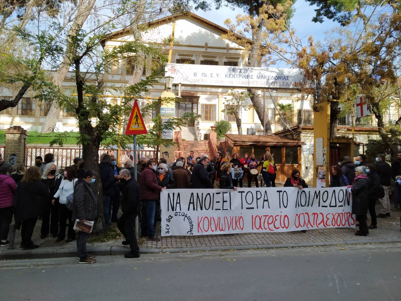 Τη στιγμή που η κυβέρνηση αδιαφορεί για την κατάρρευση των δημόσιων νοσοκομείων της πόλης, οι ΜΕΘ ξεχειλίζουν και τα χειρουργεία αναβάλλονται, μέλη του Κοινωνικού Ιατρείου Αλληλεγγύης Θεσσαλονίκης καθώς και μέλη κοινωνικών και πολιτικών οργανώσεων για δεύτερη συνεχόμενη Κυριακή συγκεντρώθηκαν έξω από το πρώην νοσοκομείο Λοιμωδών στην περιοχή της Τούμπας, διεκδικώντας την επαναλειτουργία του, με πλήρη στελέχωση και εξοπλισμό.