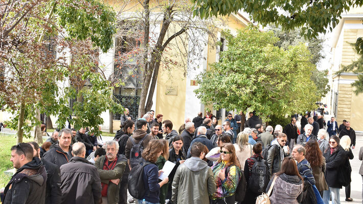 Οι συνδικαλιστές, μέλη του ΚΚΕ, δικάζονται με τις κατηγορίες της “στάσης, της βίας κατά υπαλλήλων και της επικίνδυνης σωματικής βλάβης” επειδή συμμετείχαν στη συγκέντρωση του ΚΚΕ στις 17 Νοέμβρη 2020, κόντρα στη γενική απαγόρευση που είχε προσπαθήσει να επιβάλει η κυβέρνηση της ΝΔ για συναθροίσεις άνω των τριών ατόμων.
