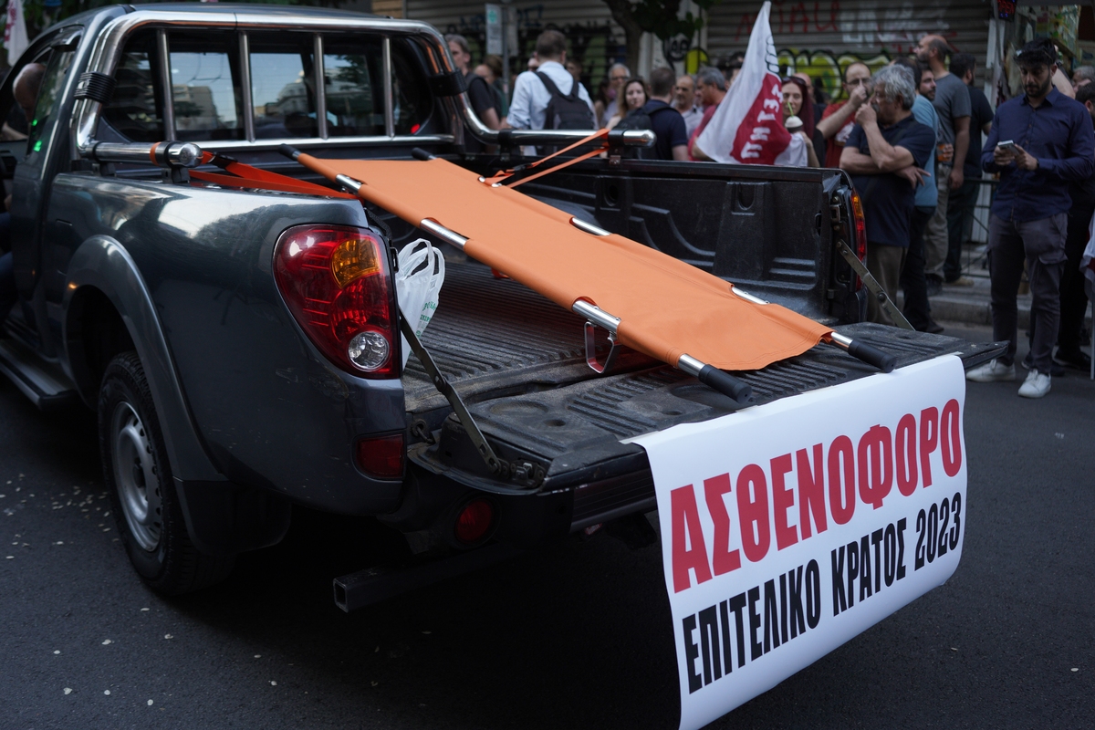 Εργατικά Συνδικάτα, Φοιτητικοί Σύλλογοι, Σύλλογοι Γυναικών, διαδηλώνουν ύστερα από κάλεσμα του ΠΑΜΕ και άλλων φορέων για «να βάλουμε τέλος στην εγκληματική τους πολιτική. Η υγεία μας δεν είναι κόστος».
