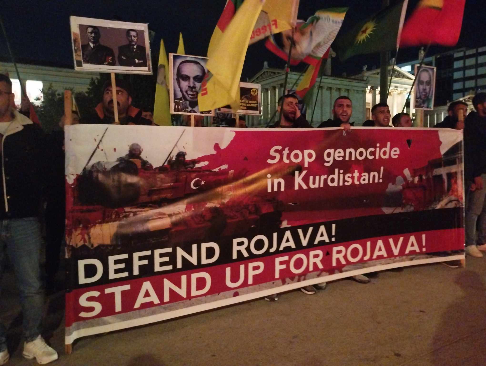 Συγκεκριμένα στη συγκέντρωση συμμετείχαν το Λαϊκό Μέτωπο, ο Διαρκής Αγώνας, η Ανοιχτή Συνέλευση ενάντια στα pushbacks και τη βία στα σύνορα και το #RiseUp4Rojava.