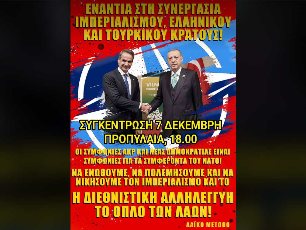 «ΕΝΑΝΤΙΑ ΣΤΗ ΣΥΝΕΡΓΑΣΙΑ ΙΜΠΕΡΙΑΛΙΣΜΟΥ, ΕΛΛΗΝΙΚΟΥ ΚΑΙ ΤΟΥΡΚΙΚΟΥ ΚΡΑΤΟΥΣ!