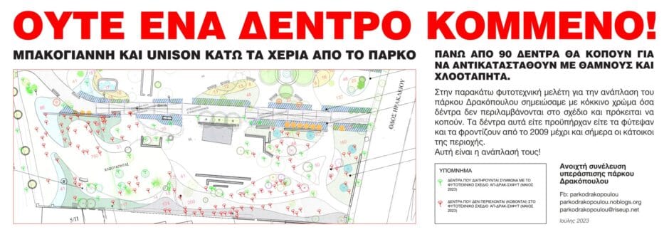 Ακολουθεί το κάλεσμα της Ανοιχτής συνέλευσης υπεράσπισης πάρκου Δρακόπουλου: