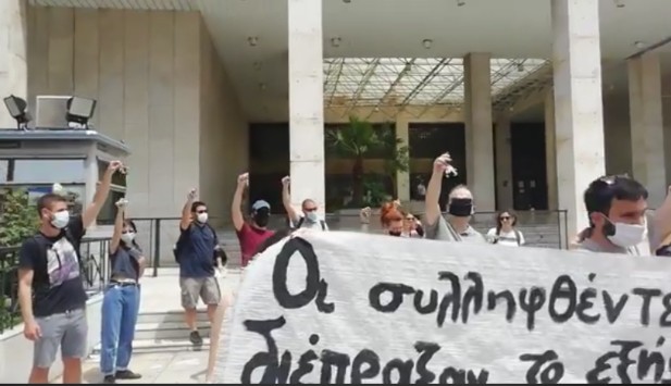 Συγκέντρωση στη ΓΑΔΑ πραγματοποιούν αυτήν την ώρα πολίτες, μέλη της πρωτοβουλίας COVID 19 Κανένας Μόνος/Καμία Μόνη, σε μια κινητοποίηση αλληλεγγύης προς τους συλληφθέντες της νύχτας αστυνομικής βαρβαρότηας στην Κυψέλη. Οι διαδηλωτές κουνάνε στον αέρα τα κλειδιά μας «όπως όσοι/ες συνεληφθησαν αναιτια κάτω από το σπίτι τους στην Κυψέλη».