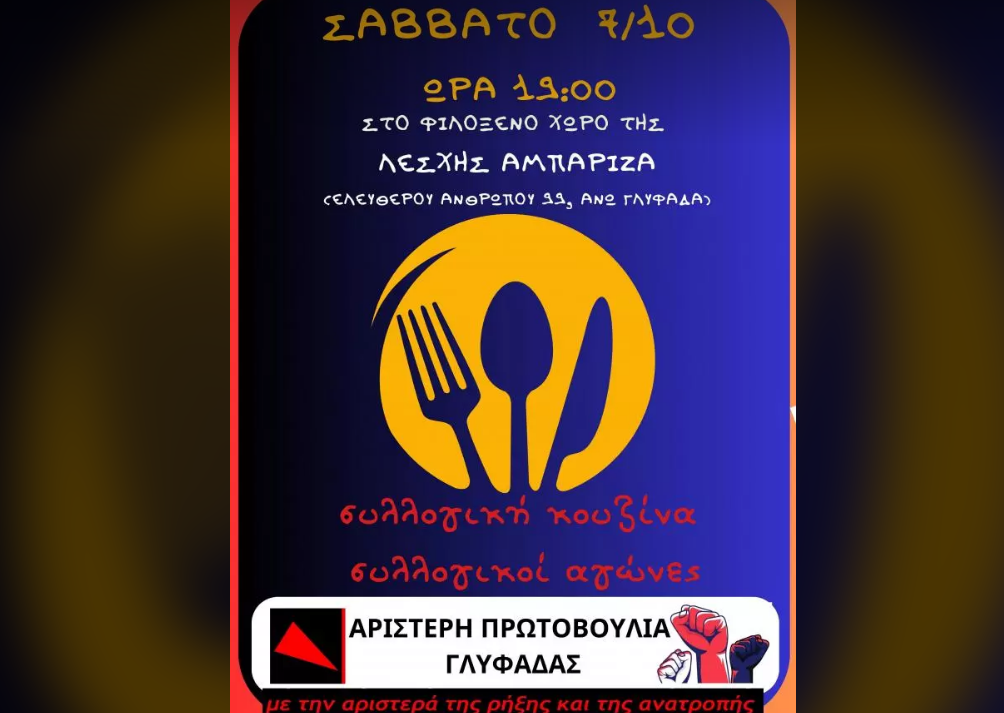 «Σας καλούμε όλες-ους, να φάμε να συζητήσουμε και να προετοιμαστούμε για τους αγώνες που έρχονται συλλογικά, στον πάντα φιλόξενο και ανοιχτό χώρο της πολιτικής – πολιτιστικής Λέσχης ΑΜΠΑΡΙΖΑ!
