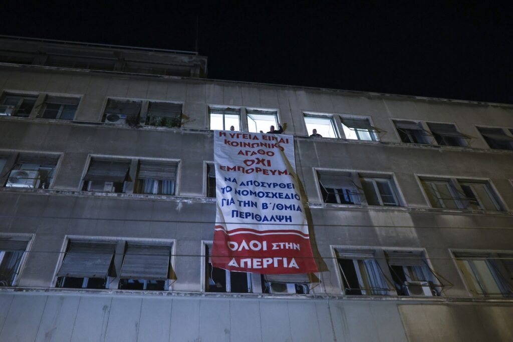 Οι γιατροί, που συνεχίζουν και σήμερα τις κινητοποιήσεις, απατώντας την απόσυρση του νομοσχεδίου, ζητούν να συναντήσουν τον Θάνο Πλεύρη, ενώ ανήρτησαν πανό στους τελευταίους ορόφους, όπου στεγάζεται το υπουργείο και φώναξαν συνθήματα.