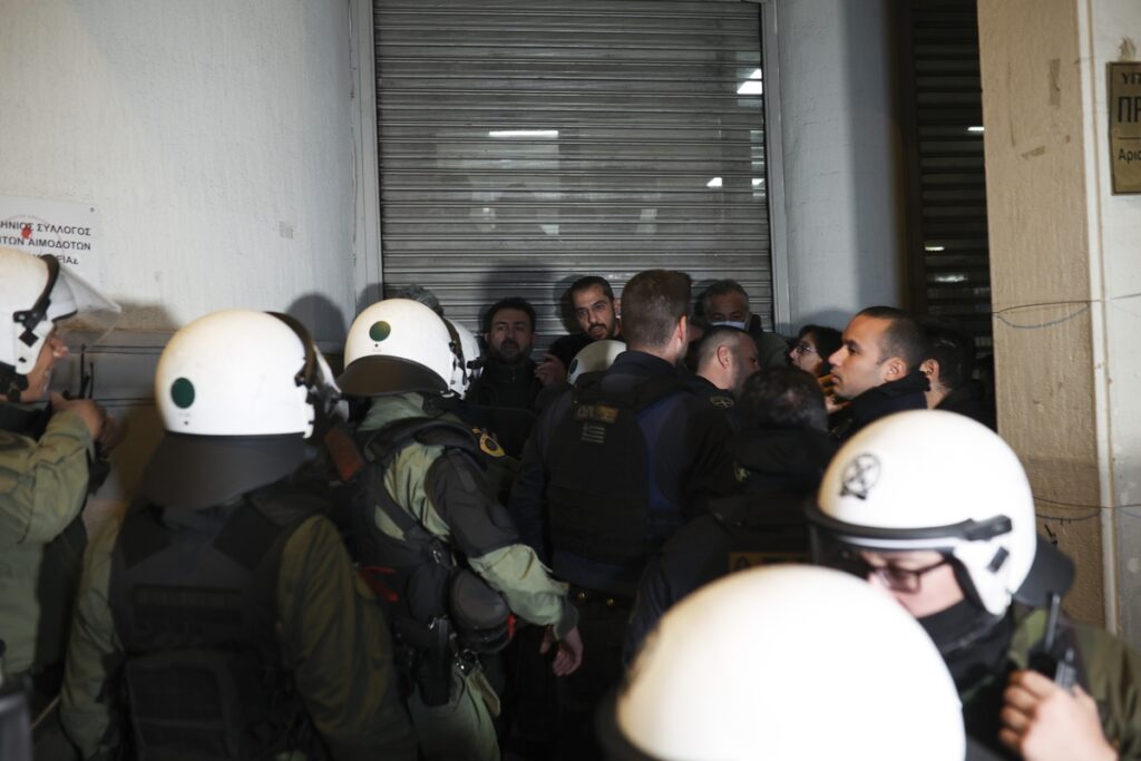 Στο σημείο βρίσκονταν ισχυρές αστυνομικές δυνάμεις και σημειώθηκε μικρή ένταση, όταν επιχείρησαν να απομακρύνουν γιατρούς και νοσηλευτές από το σημείο.