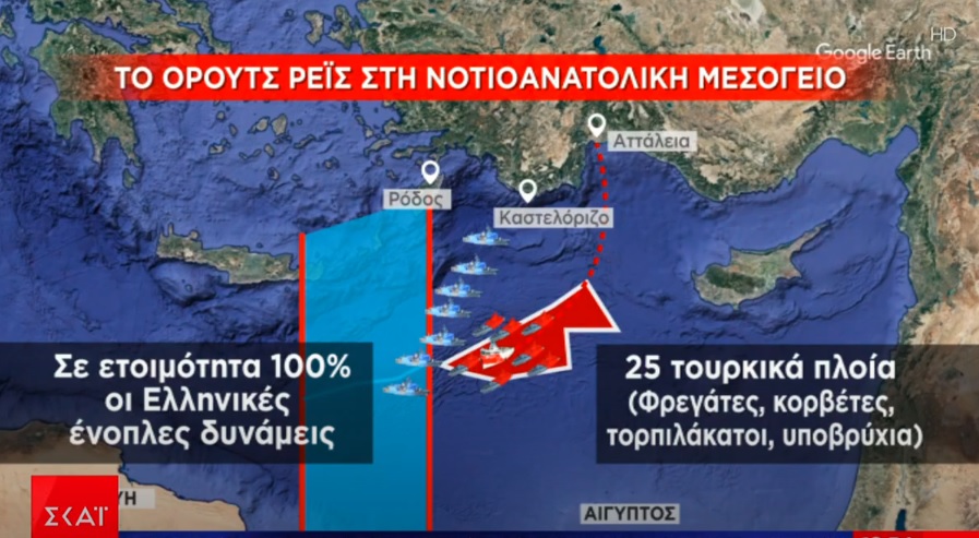 Η πορεία του Oruc Reis, όπως μετάδωσε το ΣΚΑΪ
