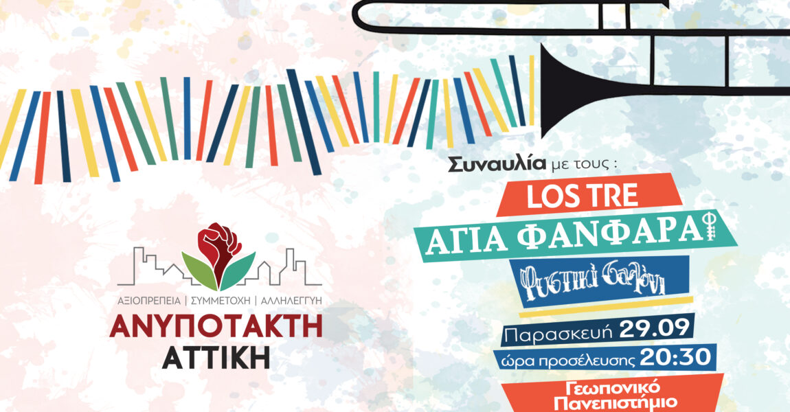 Στη συναυλία θα παίξουν οι Los Tre, Αγία Φανφάρα και Φυστικί Σαλόνι, ενώ η είσοδος είναι ελεύθερη με ώρα προσέλευσης 20:30.