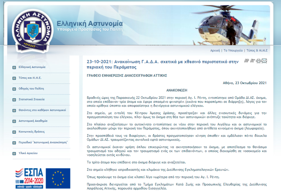 O υπουργός Προστασίας του Πολίτη, Τάκης Θεοδωρικάκος, εξακολουθεί να σιωπά και να μην παίρνει θέση για τις διαψεύσεις που ανέφερε στην επίσημη ανακοίνωσή της η ΕΛΑΣ, με αφορμή το δολοφονικό συμβάν στο Πέραμα.