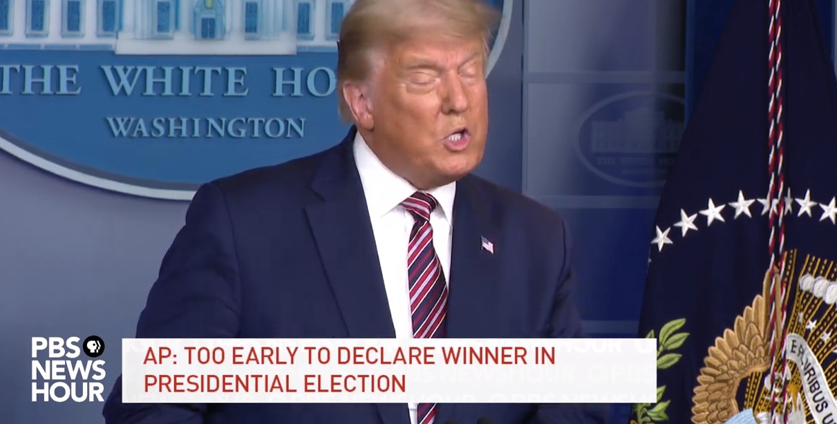 Ο Ντ. Τραμπ σε μία από τις πιο μελανές σελίδες της αμερικανικής ιστορίας, εμφανίστηκε απέναντι στον υπόλοιπο κόσμο, και αφού δύο ημέρες νωρίτερα αυτοανακηρύχθηκε νικητής των προεδρικών εκλογών, τα ξημερώματα της Παρασκευής υποστήριξε πως του «κλέβουν τις εκλογές», επικαλούμενος «στοιχεία» τα οποία ουδέποτε ανέφερε. Υπενθυμίζεται πως αυτό συνέβη την ώρα που ακόμα σε αρκετές πολιτείες βρίσκεται σε εξέλιξη η καταμέτρηση των επιστολικών ψήφων, με τον Μπάιντεν να προπορεύεται με 264 εκλέκτορες, και τον Τραμπ να υπολείπεται με 214.