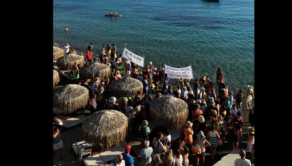 Η συλλογικότητα πραγματοποίησε νέα παρέμβαση, αυτήν την φορά στην παραλία Μαρτσέλο της Παροικίας, όπου ένα μεγάλο μέρος της ήταν κατειλημμένο από ξαπλώστρες και ομπρέλες επιχειρήσεων.