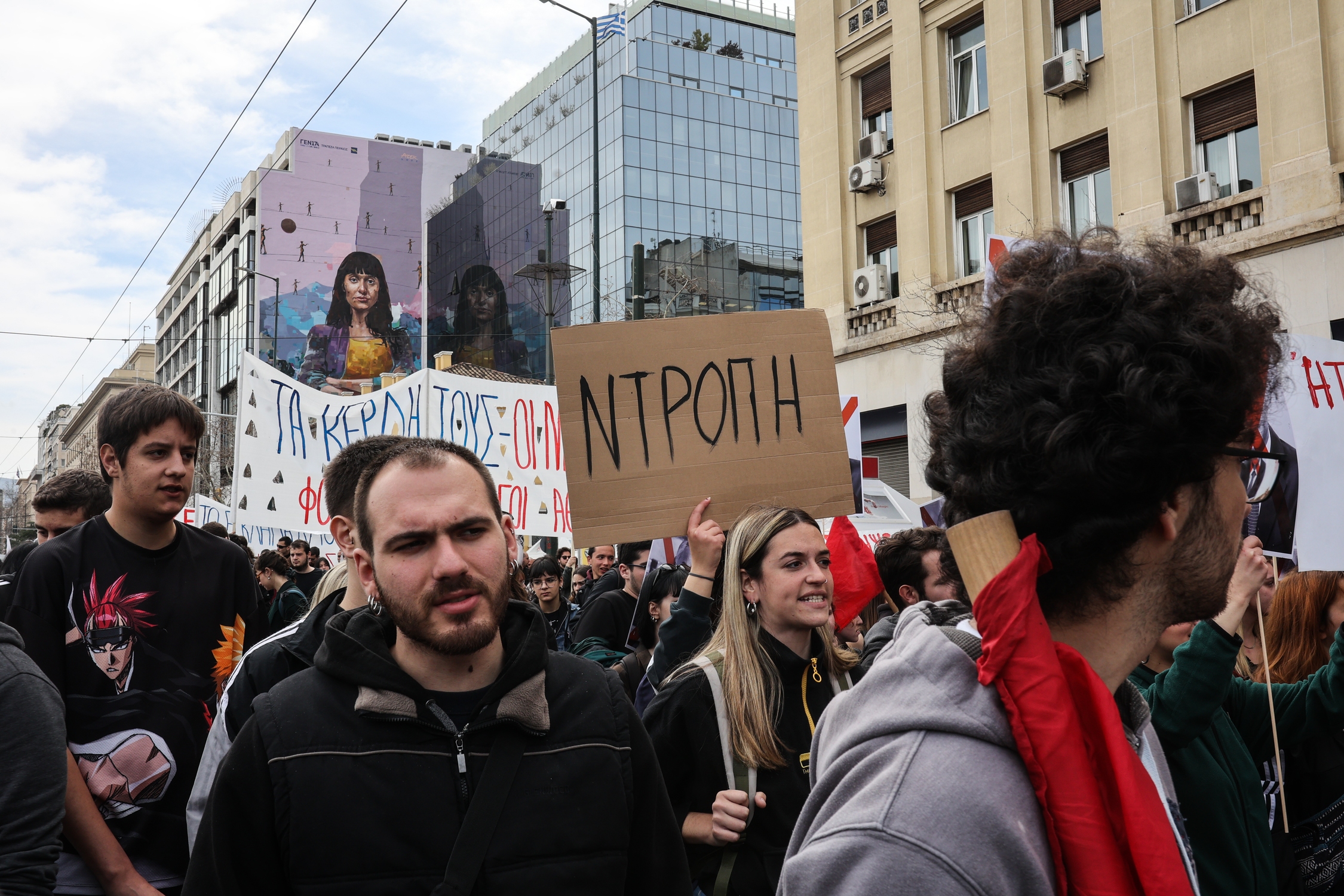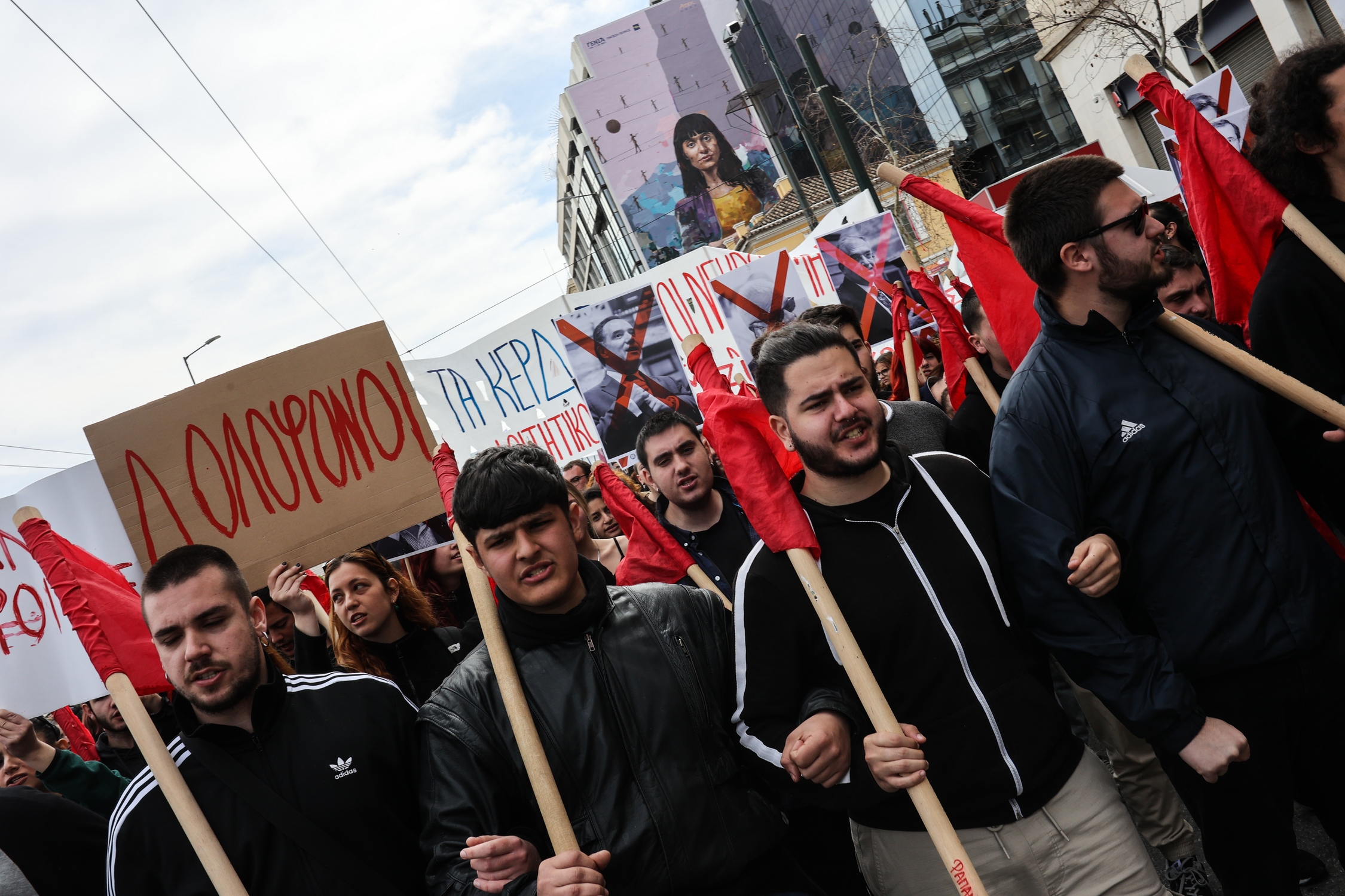 Demonstration by students, protesting the deaths of dozens of people in Greece’s deadliest rail accident, between a passenger train carrying more than 350 people and a freight train on Tuesday evening in Tempi valley, near the city of Larissa. In Athens , Greece on March 9, 2023 / Πορεία διαμαρτυρίας μαθητών για τον θάνατο δεκάδων ανθρώπων στο σιδηροδρομικό δυστύχημα στα Τέμπη. Στην Αθήνα στις 9 Μαρτίου, 2023Demonstration by students, protesting the deaths of dozens of people in Greece’s deadliest rail accident, between a passenger train carrying more than 350 people and a freight train on Tuesday evening in Tempi valley, near the city of Larissa. In Athens , Greece on March 9, 2023 / Πορεία διαμαρτυρίας μαθητών για τον θάνατο δεκάδων ανθρώπων στο σιδηροδρομικό δυστύχημα στα Τέμπη. Στην Αθήνα στις 9 Μαρτίου, 2023