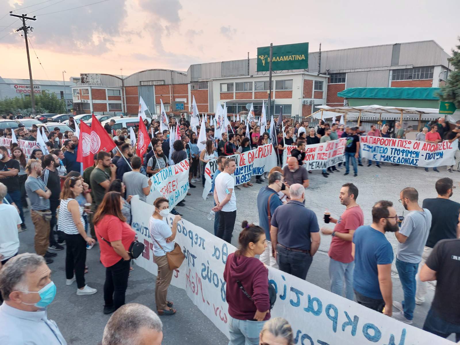 Σήμερα από νωρίς το πρωί εκτός από τους απεργούς της «Μαλαματίνα», έξω από τον χώρο του εργοστασίου βρίσκονται και εργαζόμενοι άλλων κλάδων, φοιτητές, μαθητές και συνδικάτα, δίνοντας μία ηχηρή και μαζική απάντηση στους σχεδιασμούς της εργοδοσίας που έχει τις πλάτες της Κυβέρνησης.