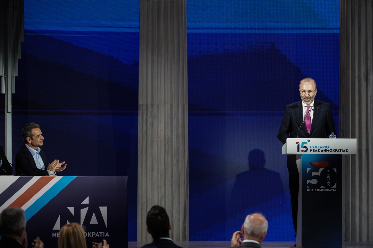 «Αγαπητοί φίλοι, σήμερα εορτάζετε τα 50 χρόνια σας. Το 1974 ο Κωνσταντίνος Καραμανλής επέστρεψε στην Ελλάδα για να αποκαταστήσει τη δημοκρατία. Ήξερε ότι η Ευρώπη δεν ήταν απλώς ένας αρχαίος ελληνικός μύθος. Ήταν το μέλλον μιας δημοκρατικής και ευημερούσας Ελλάδας. Ενώ οι Έλληνες Σοσιαλιστές έκαναν εκστρατείες κατά της Ευρώπης και του ΝΑΤΟ, ο Καραμανλής ίδρυσε ένα νέο πολιτικό κόμμα, τη Νέα Δημοκρατία, για να πολεμήσει για την Ευρώπη. Στη Βουλή είπε, «η Ελλάς, πολιτικά, αμυντικά, οικονομικά, πολιτιστικά, ανήκει εις την Δύσιν»» ανέφερε ο πρόεδρος του Ευρωπαϊκού Λαϊκού Κόμματος Μάνφρεντ Βέμπερ υπογραμμίζοντας ότι η Νέα Δημοκρατία είναι το ισχυρότερο κόμμα στην Ελλάδα και το ΕΛΚ είναι το ισχυρότερο κόμμα στην Ευρώπη!