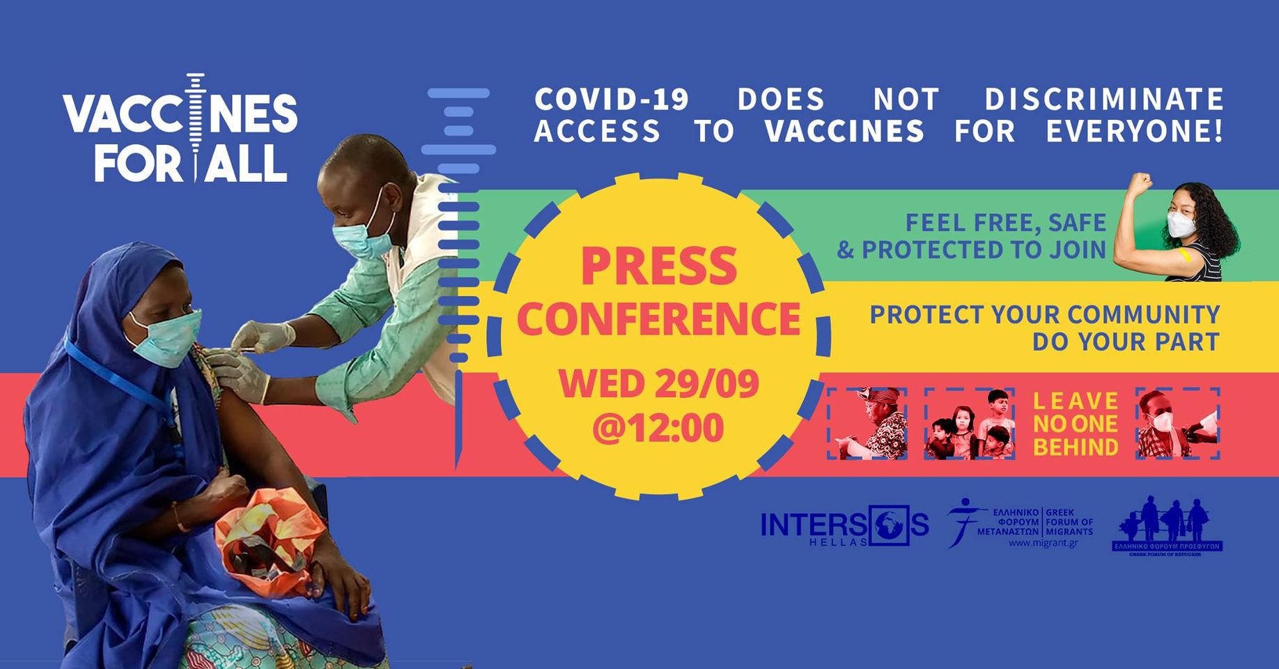 Ομιλητές στη συνέντευξη τύπου είναι ο Τάκης Παναγιωτόπουλος, Ομότιμος Kαθηγητής Δημόσιας Υγείας στην Εθνική Σχολή Δημόσιας Υγείας και μέλος της Εθνικής Επιτροπής Εμβολιασμών, ο Απόστολος Καψάλης, καθηγητής στο Πάντειο Παν/μιο και στο Παν/μιο Πελοποννήσου, νομικός-εργατολόγος και ειδικός σε θέματα μετανάστευσης, περιστασιακής απασχόλησης και αδήλωτης εργασίας στον αγροτικό τομέα, ο Απόστολος Βεΐζης, ιατρός και Γενικός Διευθυντής της INTERSOS Hellas, η Άντλα Σασάτη, Διευθύντρια Γραφείου του Ελληνικού Φόρουμ Μεταναστών και ο Γιονούς Μουχαμμαντί, Διευθυντής του Ελληνικού Φόρουμ Προσφύγων.