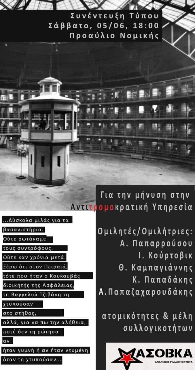 Στη συνέντευξη Τύπου θα παρέμβουν και άλλα άτομα, μέλη πολιτικών οργανώσεων, που καταγγέλλουν ότι έχουν βασανιστεί από την Ελληνική Αστυνομία.