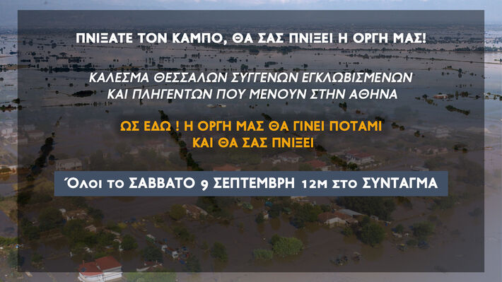 «Όλοι εμείς που υπογράφουμε το κείμενο, καταγόμαστε από τη Θεσσαλία και μένουμε στην Αθήνα, που είμαστε συγγενείς εγκλωβισμένων από τις περιοχές της Θεσσαλίας, που έχουμε υποστεί σοβαρές καταστροφές στις περιουσίες μας, που όλες αυτές τις μέρες ζούμε την αγωνία για τους δικούς μας ανθρώπους, υψώνουμε κραυγή διαμαρτυρίας. Δεν αντέχουμε άλλο! Αυτές τις μέρες ζούμε το δράμα των δικών μας ανθρώπων, φίλων και συγγενών που παραμένουν εγκλωβισμένοι για μέρες χωρίς πόσιμο νερό και τροφή, χωρίς ρεύμα και χωρίς τα αναγκαία φάρμακα για όσους νοσούν. Ζουν κυριολεκτικά και προσπαθούν να επιβιώσουν μέσα στα λασπόνερα».