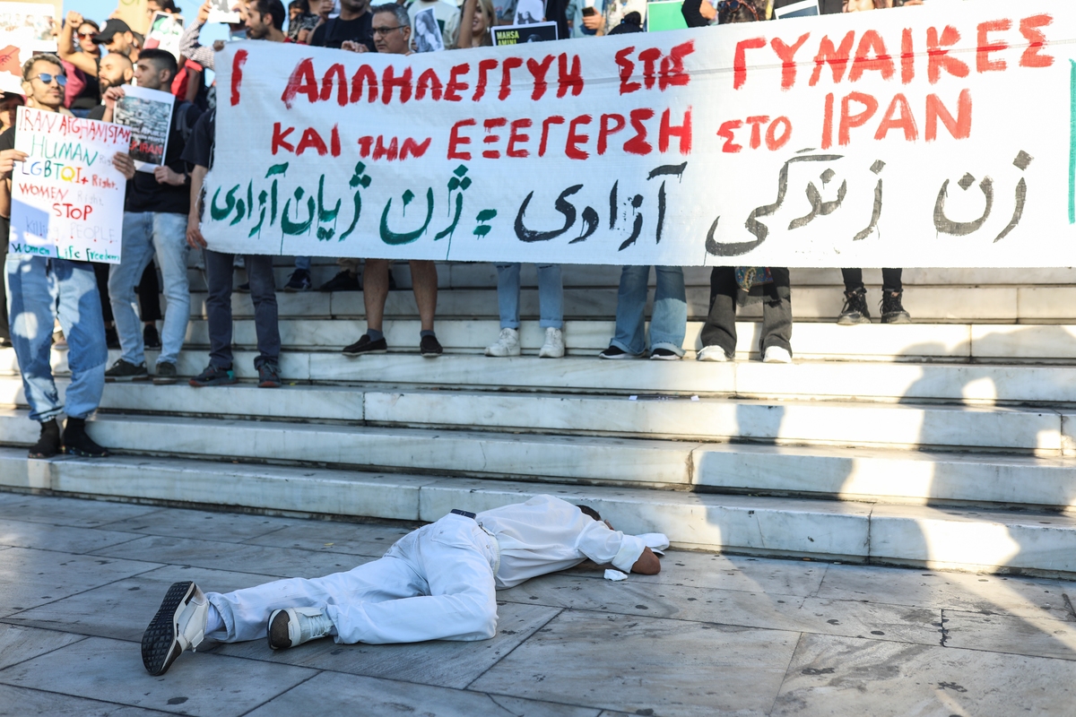 Εκατοντάδες πρόσφυγες και προσφύγισσες από το Ιράν πήραν μέρος στη συγκέντρωση στο Σύνταγμα και βροντοφώναξαν «Γυναίκες-Ζωή- Ελευθερία», «Aπό την Τεχεράνη μέχρι την Αθήνα φωνάζουμε κάτω οι δικτατορίες», «Και σήμερα και αύριο και όσο χρειαστεί είμαστε όλοι Ιρανοί», «Αζαντί-Ελευθερία» .