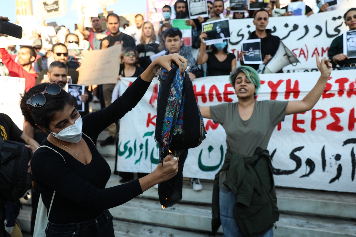 Σύμφωνα με την Κίνηση Ενωμένοι Ενάντια στο Ρατσισμό και τη Φασιστική Απειλή: «Στη συγκέντρωση τον λόγο έπαιρναν, η μια μετά την άλλη γυναίκες και άνδρες από το Ιράν που κατήγγειλαν τις μαζικές δολοφονίες διαδηλωτών από την αστυνομία, την απαγόρευση της ενημέρωσης και του ίντερνετ ζητώντας την αλληλεγγύη όλων για να σταματήσει η βάρβαρη καταπίεση των γυναικών και συνολικά του ιρανικού λαού».