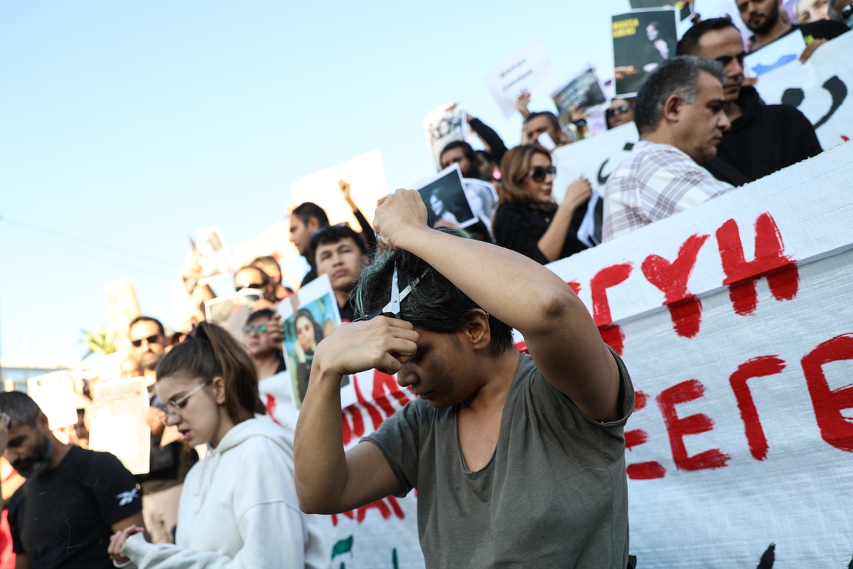 «Mαχητική διαδήλωση με κόψιμο μαλλιών σε αλληλεγγύη με τις γυναίκες και την εξέγερση στο Ιράν»