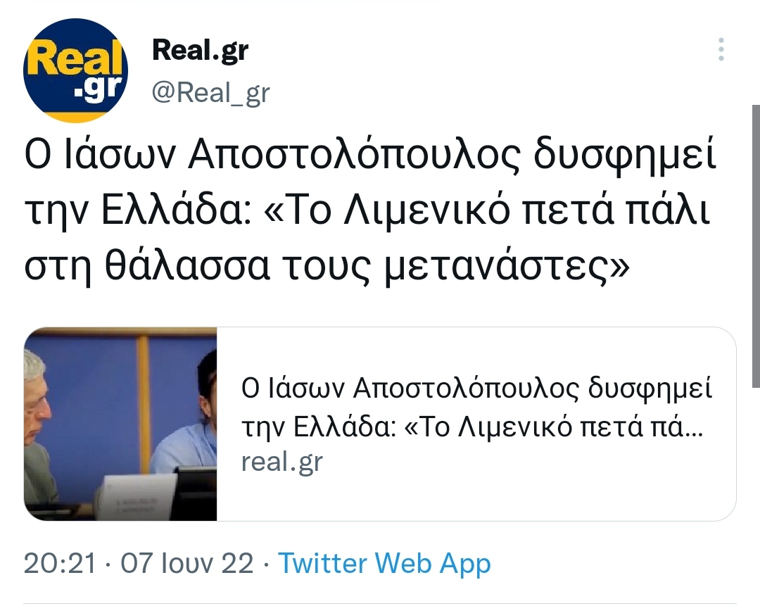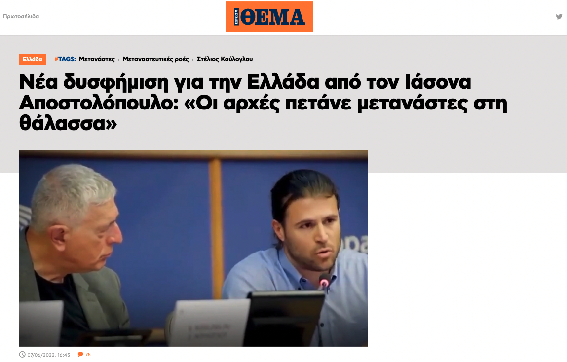 «Αυτό που κρατάμε από τον Ιάσονα είναι πως οι παράνομοι μετανάστες φτάνουν μόνοι τους στα νησιά και από δίπλα τον Κούλογλου να τον ακούει με μεγάλη προσοχή. Ο Ιάσονας Αποστολόπουλος κατηγορεί το ελληνικό Λιμενικό Σώμα για εγκλήματα κατά των παράνομων μεταναστών στο Ευρωκοινοβούλιο σε ειδική εκδήλωση, με πρωτοβουλία του Στέλιου Κούλογλου» γράφει σε ανάρτησή της η γαλάζια, ξεκάθαρα υποστηρικτική προς τη ΝΔ, ομάδα του facebook «Ομάδα Αλήθειας». Δημοσιεύοντας ένα απόσπασμα δύο περίπου λεπτών από την ομιλία του διασώστη στο Ευρωκοινοβούλιο για τις παράνομες επαναπροωθήσεις, η ομάδα σε μια προσπάθεια να υποτιμήσει τον ρόλο του και να ρίξει πυρά εναντίον του ΣΥΡΙΖΑ, καθώς η εκδήλωση ήταν πρωτοβουλία του ευρωβουλευτή Στέλιου Κούλογλου, καταφέρνει τελικά να γίνει ακόμα πιο γνωστό το τι συμβαίνει στο Αιγαίο.