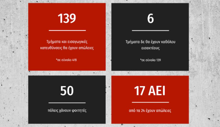 • Κλείσιμο και συγχώνευση Τμημάτων – μείωση ερευνητικού έργου & αύξηση της «διαρροής εγκεφάλων»
