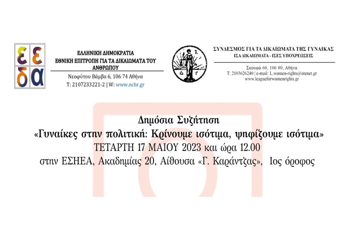 Στη συζήτηση θα μιλήσουν η Μαρία Γαβουνέλη, Πρόεδρος της Εθνικής Επιτροπής για τα Δικαιώματα του Ανθρώπου – ΕΕΔΑ, η Μαίρη Λεοντσίνη, καθηγήτρια στο τμήμα Εκπαίδευσης και Αγωγής στην Προσχολική Ηλικία του ΕΚΠΑ και πρόεδρος της Επιτροπής Ισότητας των Φύλων, η Σοφία Μπεκατώρου, ψυχολόγος και δις Ολυμπιονίκης Ιστιοπλοΐας, ο Κωνσταντίνος Μποτόπουλος, συνταγματολόγος και πρώην Ευρωβουλευτής, ο δημοσιογράφος Παύλος Τσίμας και η Ειρήνη Φερέτη, πρόεδρος του Συνδέσμου για τα Δικαιώματα της Γυναίκας – ΣΔΓ.