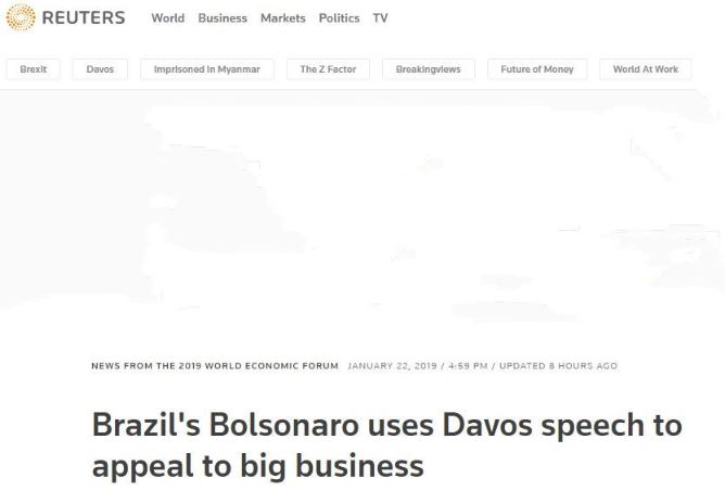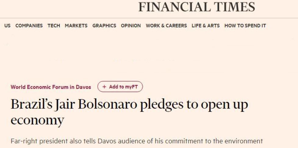 Αν διάβαζε κανείς τις χθεσινές ειδήσεις για το Νταβός, θα συναντούσε για τον Μπολσονάρου τίτλους όπως: