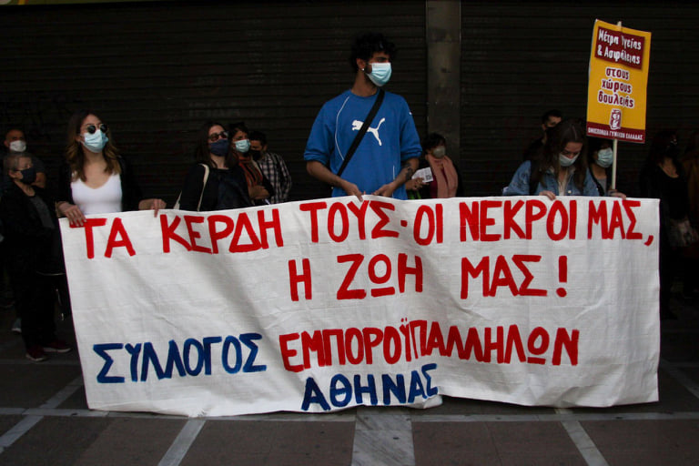 Μέτρα προστασίας με τεστ και εμβόλια στους χώρους εργασίας και στα ΜΜΜ ζητούν οι εμποροϋπάλληλοι οι οποίοι βρέθηκαν το μεσημέρι της Πέμπτης έξω από το υπουργείο Εργασίας στεκόμενοι απέναντι στα σχέδια της κυβέρνησης για τη νέα εργασιακή πραγματικότητα.