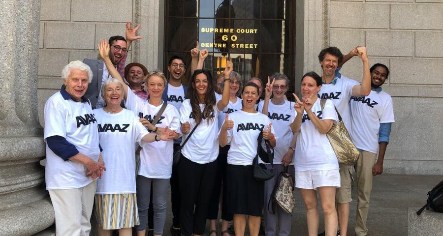 Μέλη, ομάδα και δικηγόροι του Avaaz πανηγυρίζουν στα σκαλιά του δικαστηρίου!