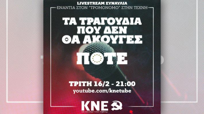 Ωστόσο, η πλειοψηφία των καλλιτεχνών δεν πείθεται από τις δεσμεύσεις της κυβέρνησης. Δεκάδες καλλιτέχνες ανταποκρίθηκαν στο κάλεσμα της ΚΝΕ και θα πάρουν μέρος στη διαδικτυακή συναυλία που θα μεταδοθεί μέσω του καναλιού της ΚΝΕ στο You Tube.