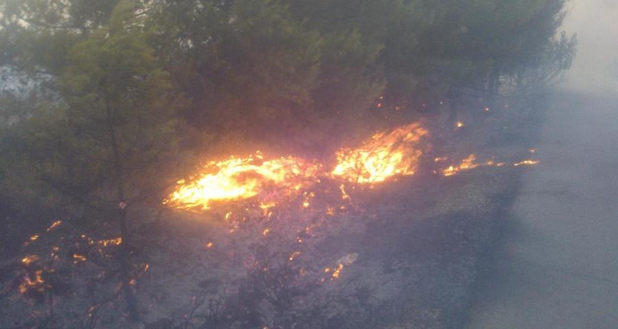 Σύμφωνα με τις αρχές, η φωτιά ξέσπασε στις δύο παρά είκοσι το μεσημέρι και καίει το πευκοδάσος της περιοχής