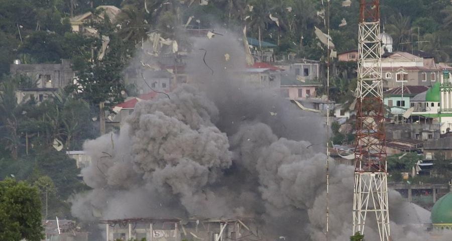 Εκρήξεις βομβών συγκλόνισαν τη Δευτέρα την πόλη Μαράουι στα νότια των Φιλιππίνων, την ώρα που υψώνονταν η σημαία της χώρας για τον εορτασμό της σημερινής ημέρας της ανεξαρτησίας,
