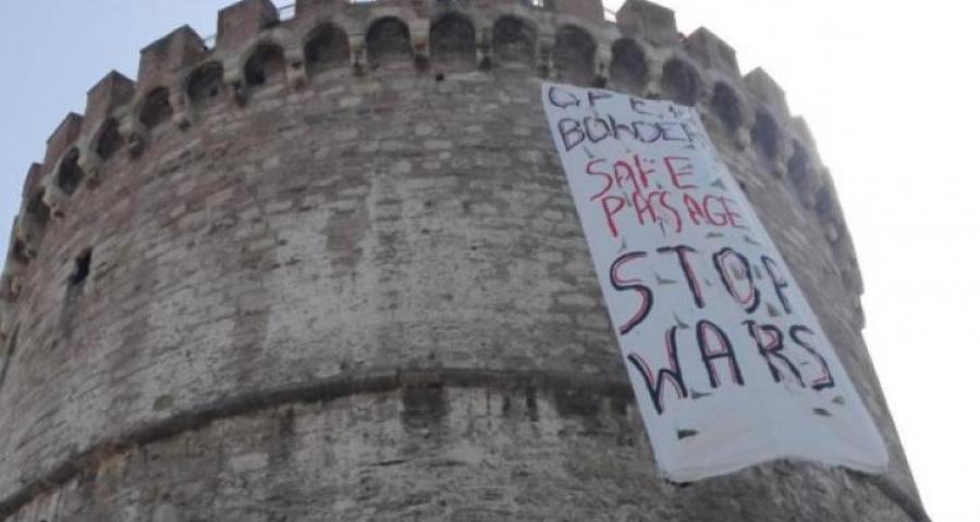 Πανό στον Λευκό Πύργο για ανοιχτά σύνορα