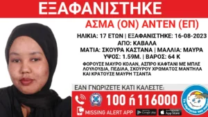 Συναγερμός από το Χαμόγελο του Παιδιού – Στις 16 Αυγούστου, στις 23:00 ώρα, εξαφανίστηκε από χώρο παιδικής προστασίας στην Καβάλα, η Άσμα (ον) Άντεν (επ) 17 ετών, σομαλικής καταγωγής.