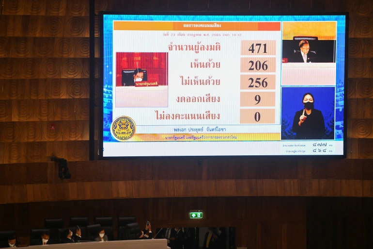 Όπως μεταδίδει το Al Jazeera, μετά από τετραήμερη συζήτηση της πρότασης μομφής στο κοινοβούλιο, η κυβέρνηση του Πραγιούθ Τσαν-ότσα, εξασφάλισε αρκετές ψήφους το Σάββατο για να ολοκληρώσει τη θητεία της ως τον Μάρτιο.