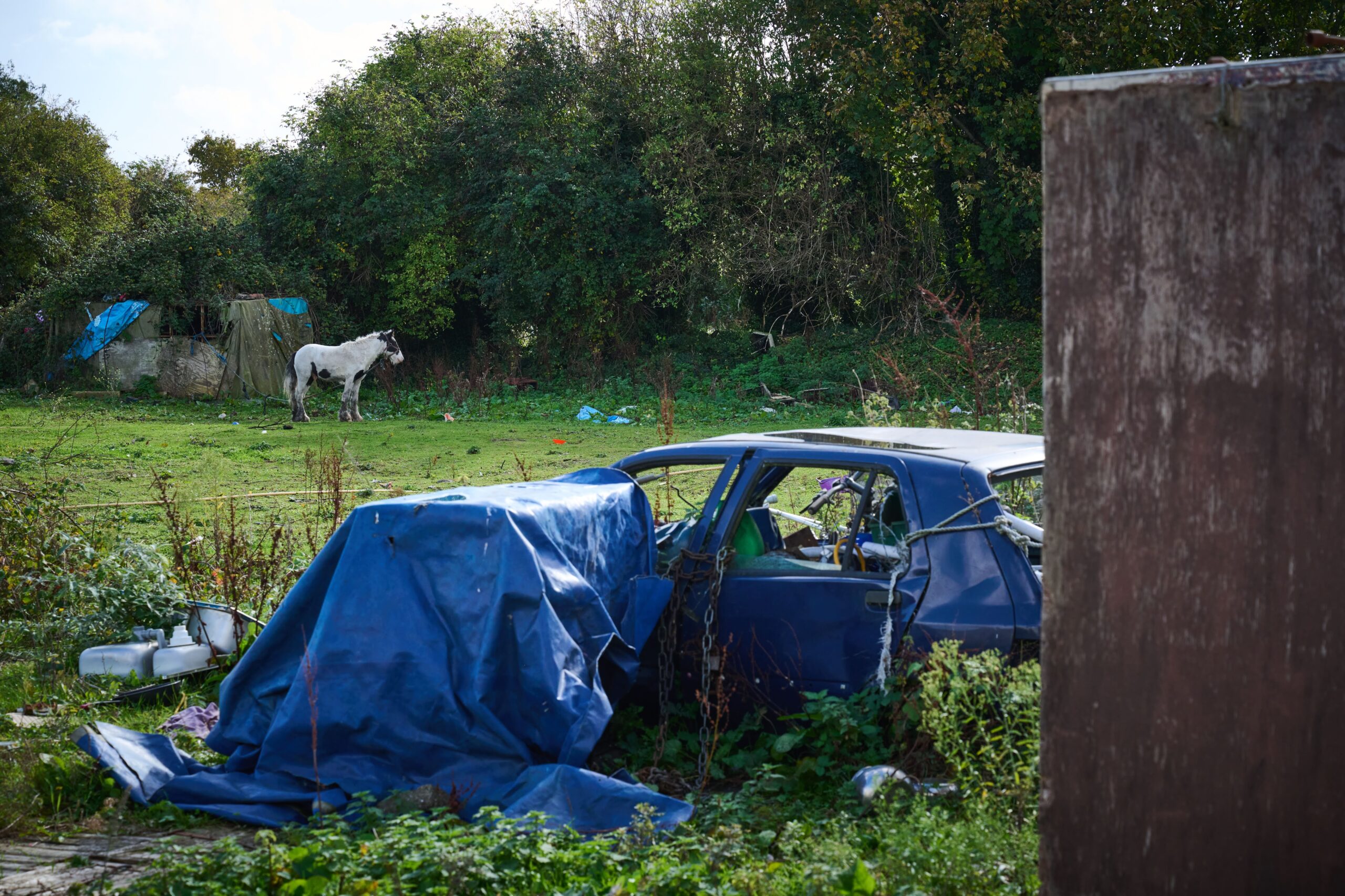 Η Νόρα ζει στο συγκεκριμένο halting site εδώ και 6 χρόνια. Έχει 4 παιδιά και μένει σε ένα τροχόσπιτο χωρίς τουαλέτα και χωρίς νερό. “Παρακαλάμε τις δημοτικές αρχές έδω και 6 χρόνια και όλο αναβάλλουν τις παροχές. Για μπάνιο και τουαλέτα πάμε στης πεθεράς μου που μένει σχετικά κοντά αλλιώς πρέπει να παρακαλάω τους γείτονες. Τον χειμώνα βρέχει και θέλω να πλύνω τα παιδιά πριν το σχολείο. Φαντάζεσαι πόσο δύσκολο είναι;” μου λέει.