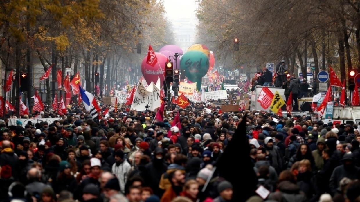 Όπως αναφέρει το Αθηναϊκό Πρακτορείο, στις 5 Δεκεμβρίου, την πρώτη ημέρα του απεργιακού κινήματος, 806.000 έως 1,8 εκατομμύριο άνθρωποι βγήκαν στους δρόμους στην Γαλλία, ενώ ταυτόχρονα ξεκινούσε απεργία στις συγκοινωνίες της περιφέρειας της πρωτεύουσας και στους σιδηροδρόμους, η οποία συνεχίζεται έκτοτε. Δύο ακόμη ημέρες εθνικής κινητοποίησης ακολούθησαν, στις 10 και 17 Δεκεμβρίου, με μικρότερη συμμετοχή.
