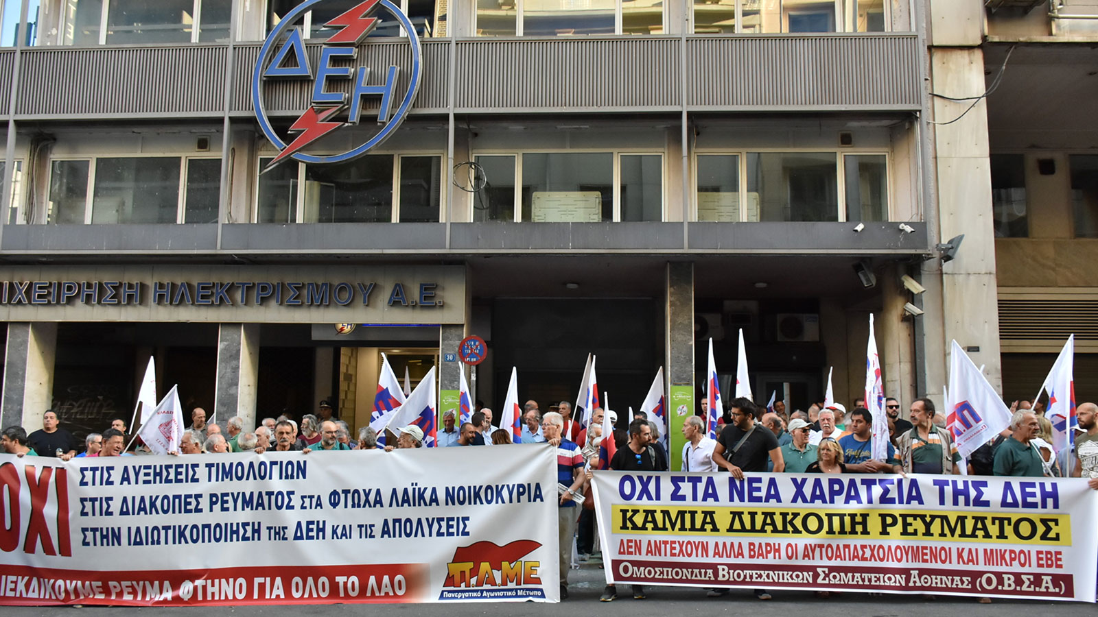 Σύμφωνα με πληροφορίες του ΤΡΡ, εκατοντάδες μέλη του ΠΑΜΕ προχώρησαν σε παράσταση διαμαρτυρίας έξω από τα γραφεία της ΔΕΗ στην οδό Χαλκοκονδύλη 30, καταγγέλλοντας την κυβέρνηση για τις αυξήσεις στους λογαριασμούς του ρεύματος. Μέλος του ΠΑΜΕ υπογράμμισε στο ΤΡΡ ότι θα συνεχίσουν τον αγώνα τους.