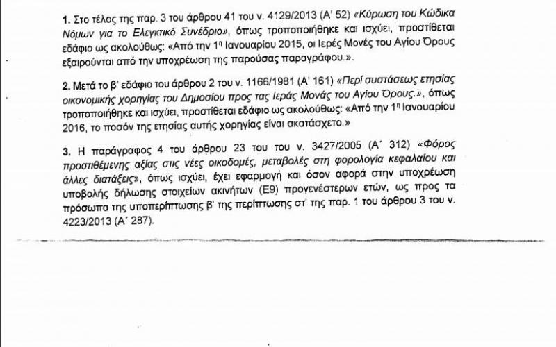 • Ο Ιερές μονές του Αγίου όρους απαλλάσσονται από «την υποχρέωση της υποβολής δήλωσης στοιχείων και ακινήτων (Ε9) προγενέστερων ετών