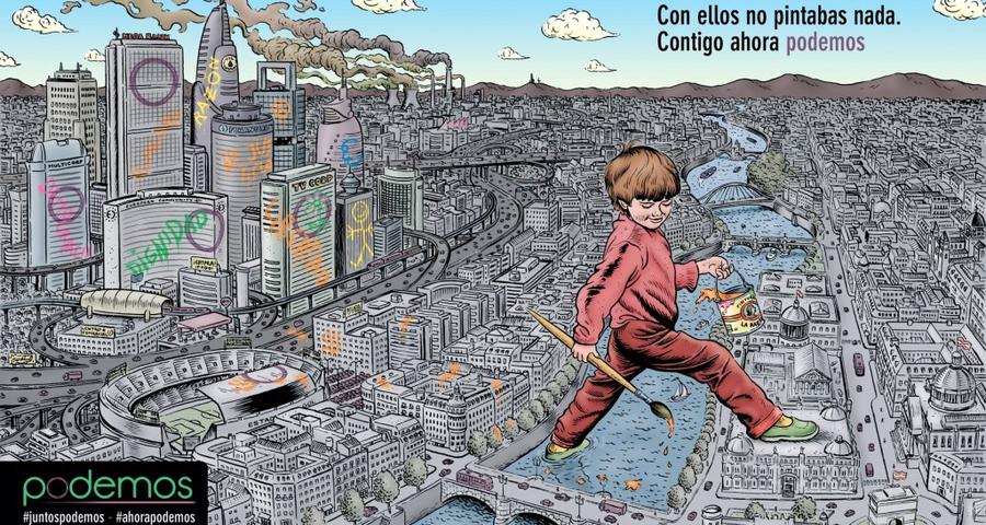Finally, the most passionate of all souls of Podemos is undoubtedly the massive occupation movement of the country’s squares in 2011, also known as the indignados movement. The indignados brought together for the first time many disparate parts of unemployed yet creative youth and others who have not yet been active in political collectives but were still voting one of the two major political parties of the establishment, the Popular party and the Socialists. The movements gave the possibility to wide parts of the population to break from this tradition and imagine themselves as part of a radical and effective political movement that denies representation and demands “democracia real” alluding thus to direct democracy and popular control of government.