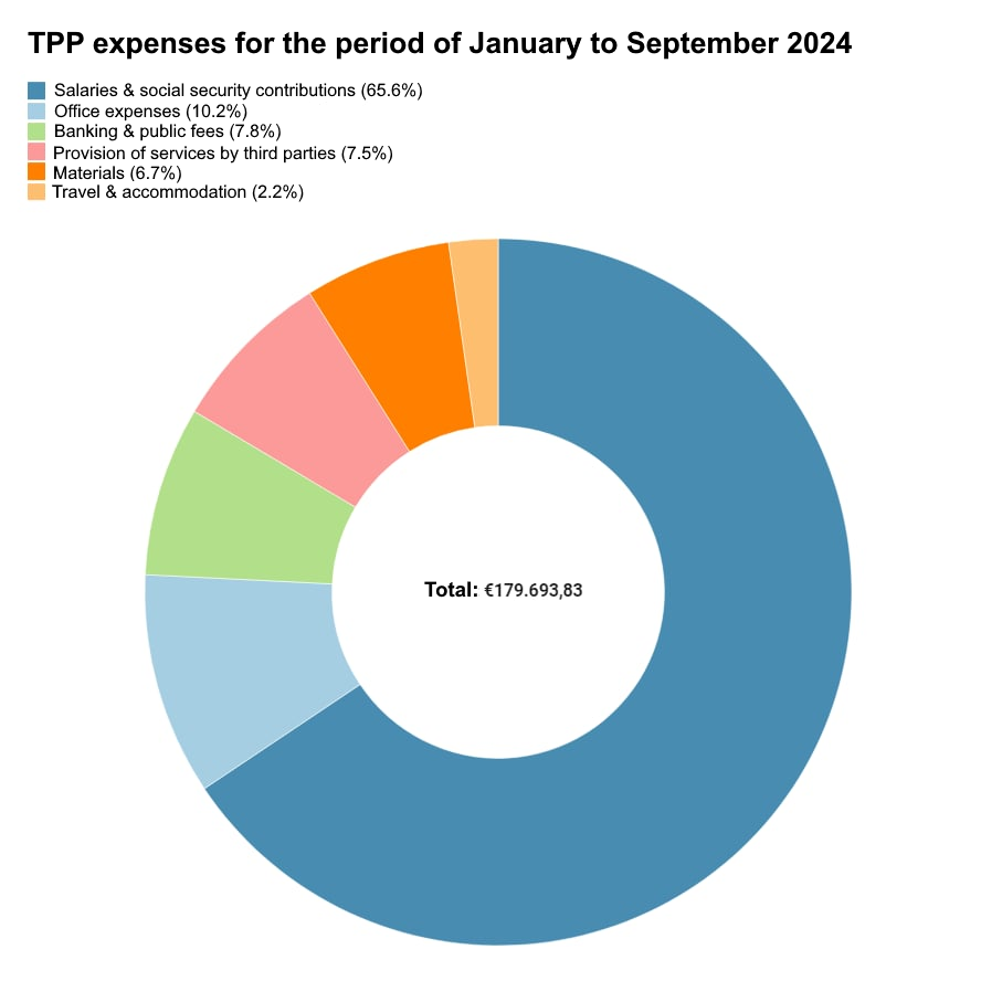 Salaries & Social Security Contributions €117,913.64 Salaries of six full-time and 13 part-time permanent TPP employees, along with corresponding social security contributions.