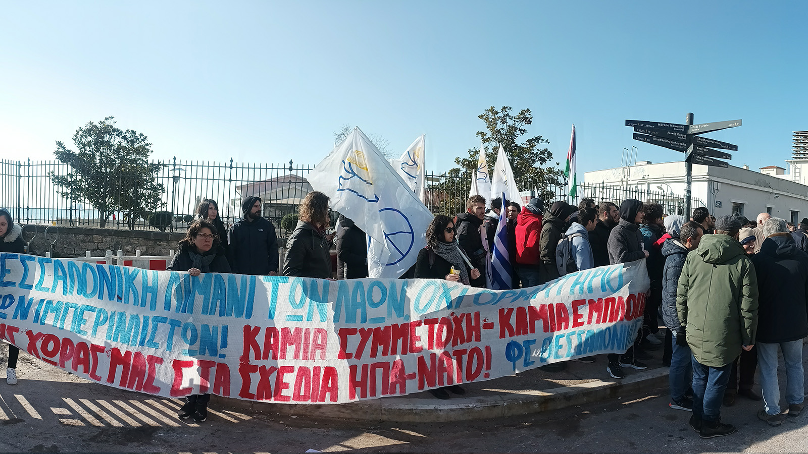 «Θεσσαλονίκη λιμάνι των λαών – όχι ορμητήριο των ιμπεριαλιστών», ξεκαθαρίζει η ΕΔΥΕΘ με το πανό που έχει αναρτήσει.